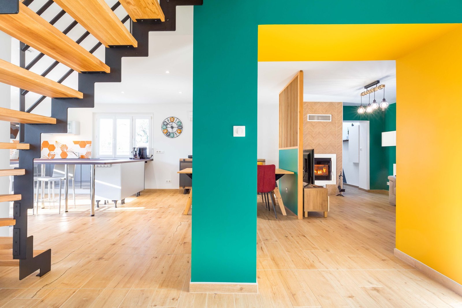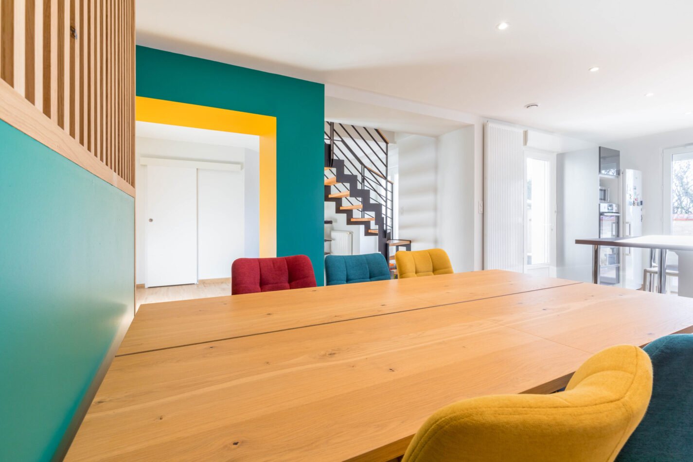 • Installer une ambiance forte, graphique et colorée, à l’image des propriétaires et de leur envie d’un intérieur vivant et caractérisé.