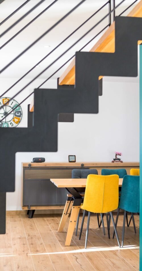 • Repenser l’escalier et son accès, impliquant l’ouverture d’un mur porteur pour créer une circulation plus directe et plus confortable.
