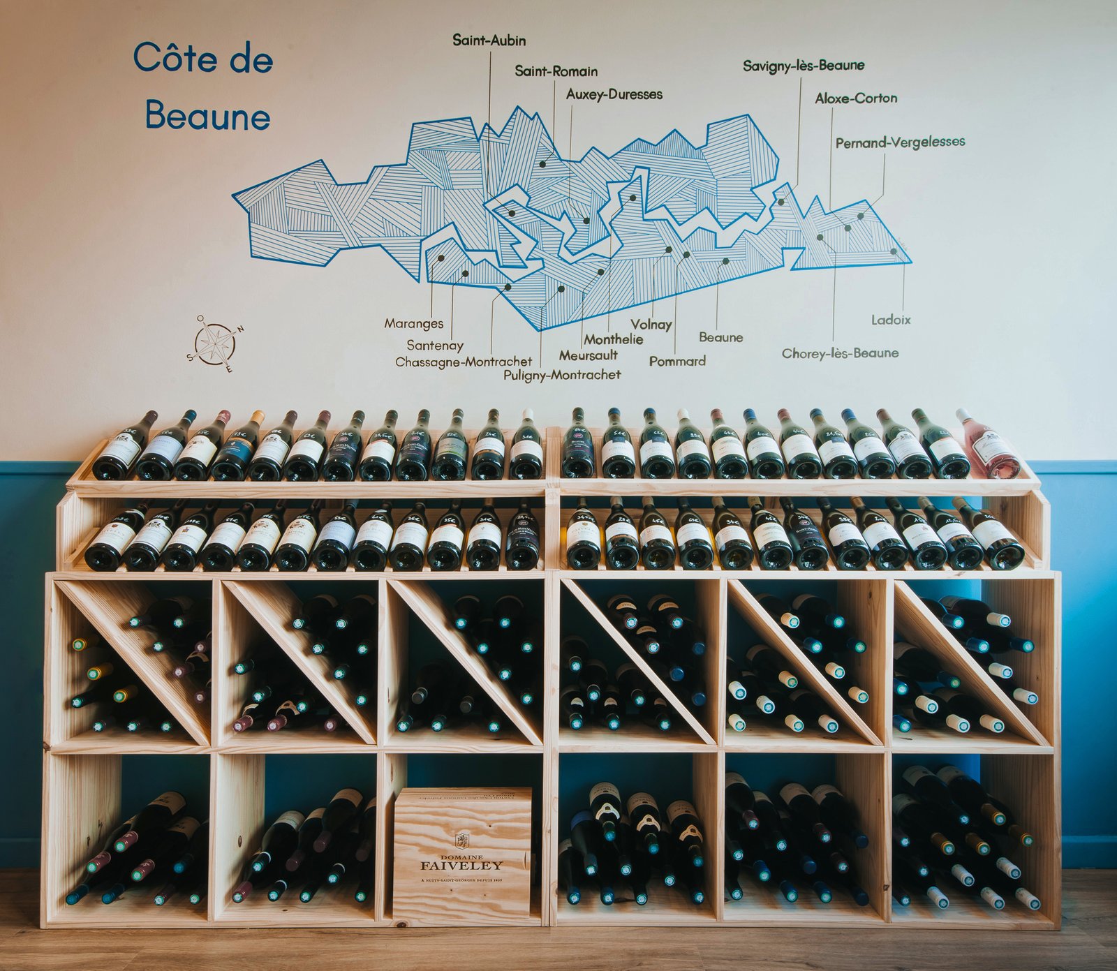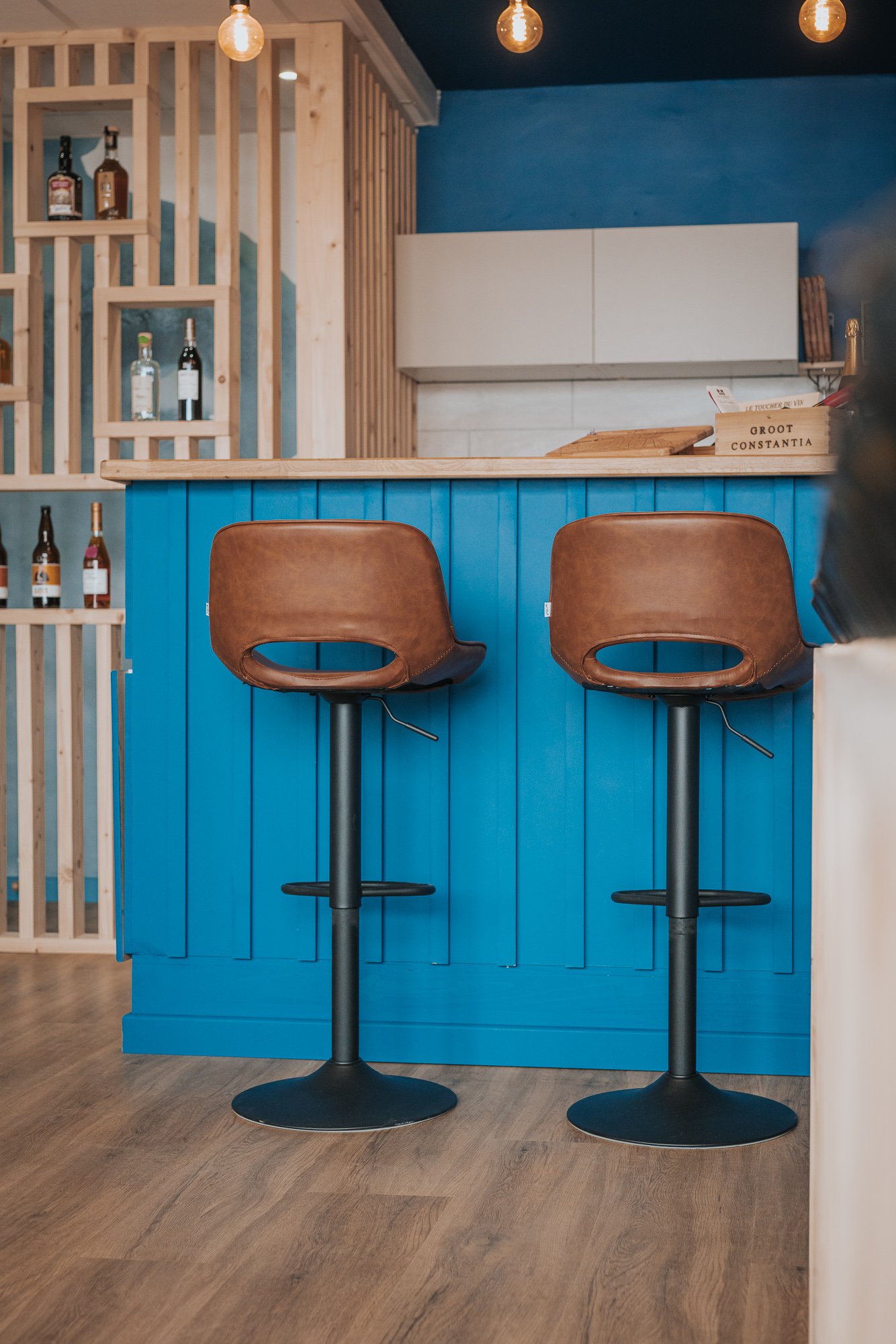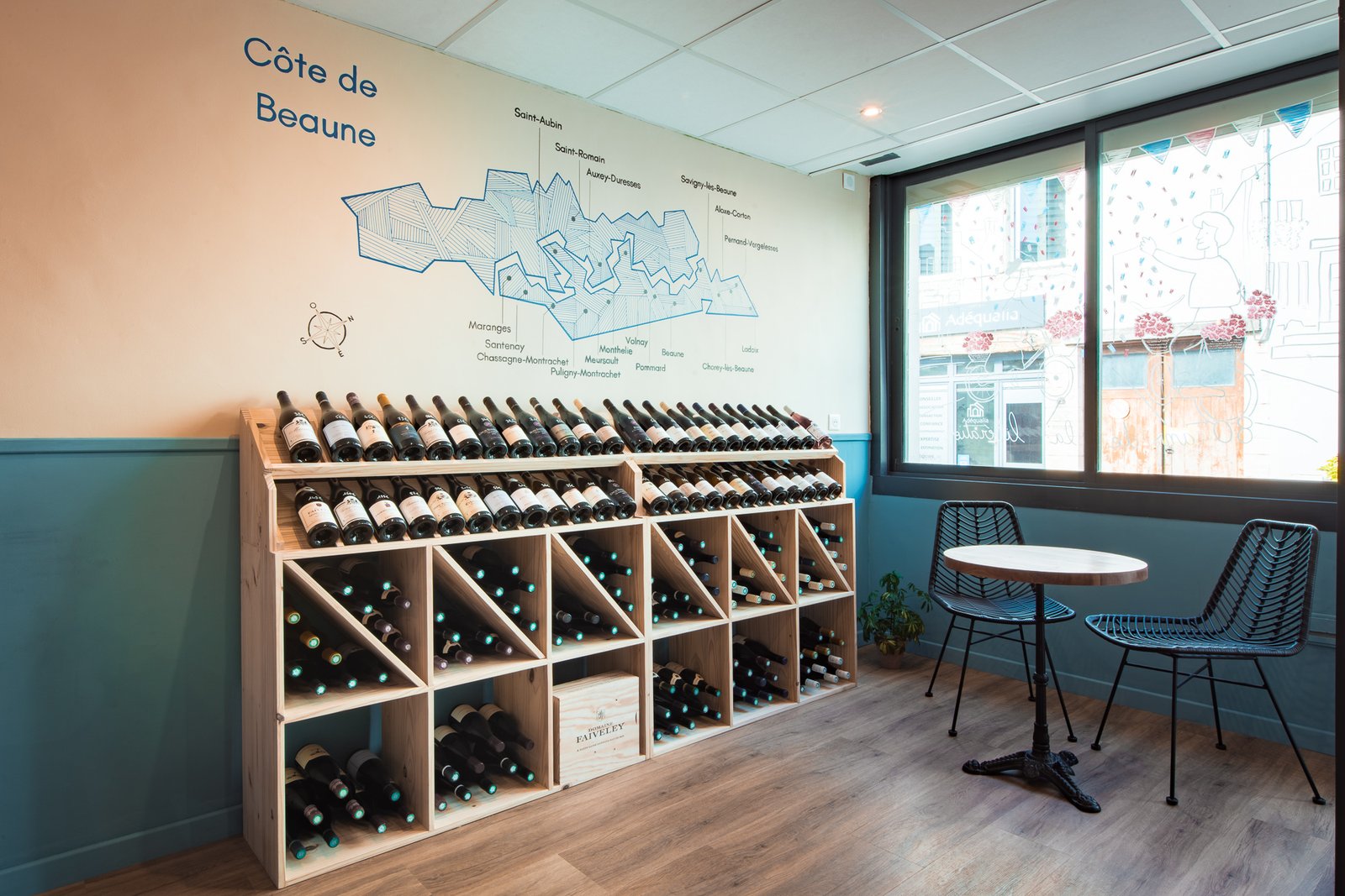 L’enjeu était clair : façonner un espace qui reflète la personnalité du gérant – authentique, passionné, attaché à son territoire – tout en valorisant les bouteilles et domaines représentés.